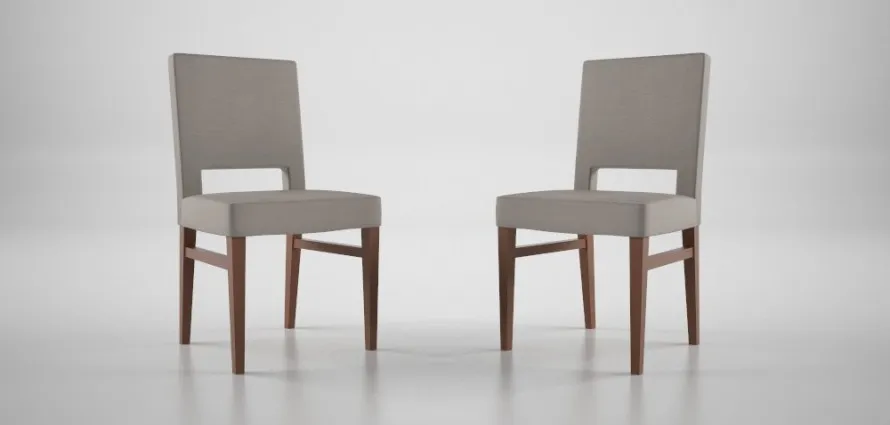 Táto stolička je ako stvorená pre veľkú rodinu alebo do menej formálnych priestorov. Sedacia časť ide ruka v ruke s drevenou konštrukciou stoličky. Jednoduchý obdĺžnikový geometrický výrez v dolnej časti opierky chrbta ju vizuálne odľahčuje. Stella je dôkazom, že stolička nemusí byť robustná, aby bola pohodlná. Dotvoriť si ju môžete podľa svojho vkusu najrôznejšími látkovými poťahmi.
