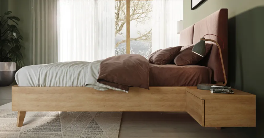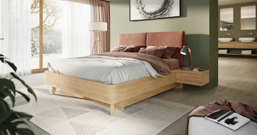 Náš tip: Do konceptu upokojujúcej farebnej škály vynikajúco zapadá naša horúca novinka – nadčasová posteľ DOLCE VITA v kvalitnom teplom dubovom prevedení s komfortným čalúneným čelom, príjemným pri večernom čítaní a jednoduchým na údržbu.